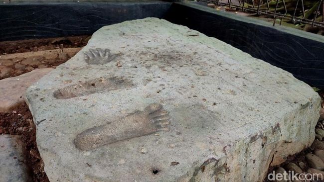 "Ada beberapa simbol pahatan. Yakni dua telapak kaki dan satu tangan sebelah kiri dan garis membentuk kotak dengan jumlah 45 kotak dan titik-titik di tengahnya," ujar Enno, Senin (8/7/2024).