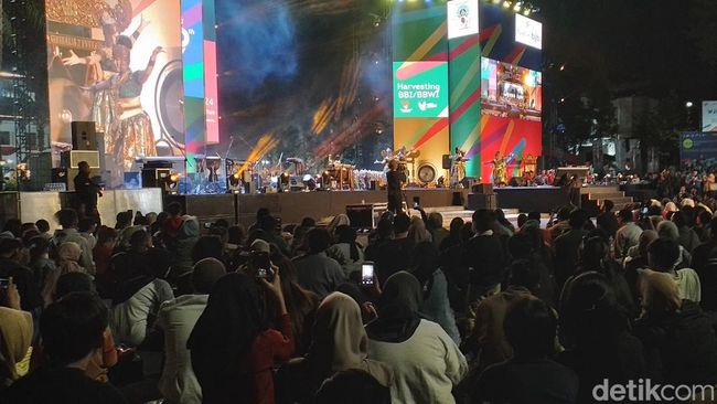 Para penonton duduk bersila menghadapi panggung yang megah itu. Semua tertib. Area yang dipakai lesehan penonton ini sejatinya adalah aspal Jalan Diponegoro, jalan di depan Gedung Sate yang ditutup khusus untuk acara pada 23-25 Agustus 2024.