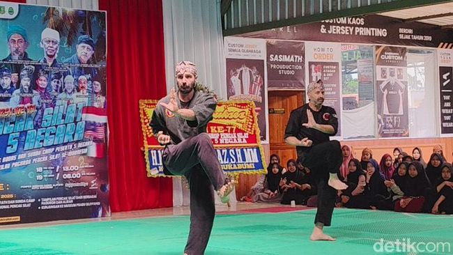 Salah satu yang paling mencuri perhatian adalah Massimiliano Morandini, pria asal Italia yang sudah bertahun-tahun mempelajari silat. Kini, ia datang langsung ke tanah kelahiran silat untuk merasakan atmosfer latihan yang sesungguhnya. Massimiliano tampak serius saat memperagakan jurus-jurus silat, lengkap dengan kuda-kuda kuat dan gerakan tangan yang penuh kendali.