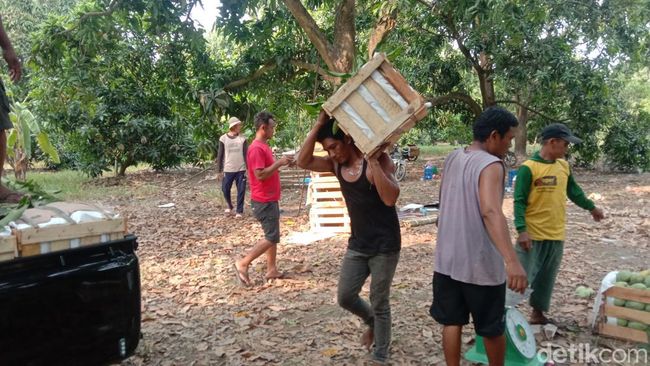 Ditemui detikJabar, Kisol (50) salah seorang petani di hutan mangga terlihat sedang sibuk memanen. Bersama sejumlah pekerja dan pembeli, ia memanen beberapa pohon yang mulai banyak berbuah.
