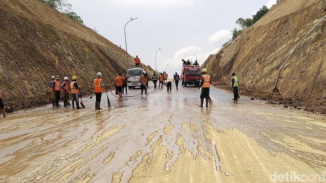 Hari ini pun tengah dilakukan pembersihan badan jalan dari material tanah dengan mengerahkan petugas dari Damkar dan BPBD Kabupaten Kuningan.