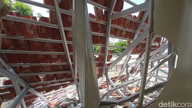"Sesuai laporan dari Kadisdik ambruknya itu diduga akibat fondasi atap baja ringan tidak mampu menahan genting (tanah liat) yang berat," terangnya.