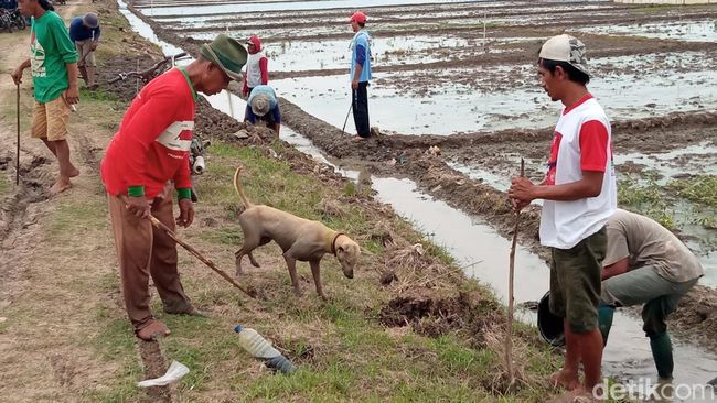 "Kita memang sengaja ngundang yang punya anjing yang biasa berburu tikus. Ada dua orang. Setiap orang bawa tiga anjing. Jadi petani yang gali lubang-lubang tikus, kalau tikusnya keluar anjing yang nangkep," kata Sugiarto.