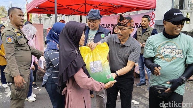 Pantauan detikJabar, antrean panjang warga sudah terjadi sejak acara GPM dibuka pukul 06.30 WIB. Mereka rela berdiri tertib untuk membeli beras kualitas medium yang dijual hanya Rp 10.400 per kilogram.