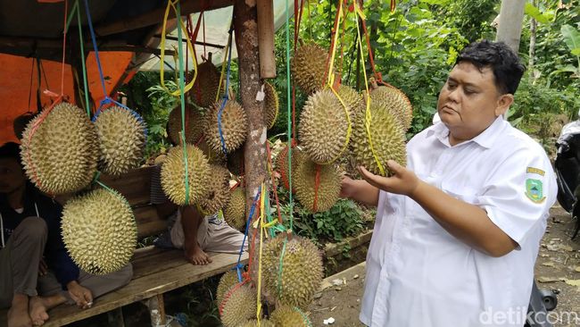 "Apalagi durian dari luar Jawa yang mengalami perjalanan laut berhari-hari disimpan di dalam truk, otomatis saat tiba di sini kualitasnya pun sudah tidak fresh. Tapi kalau durian lokal, yang dijual ini asli matang pohon. Tuh lihat banyak pohon durian di sini," ujar Cecep seraya menunjuk beberapa pohon di belakang kios tersebut.