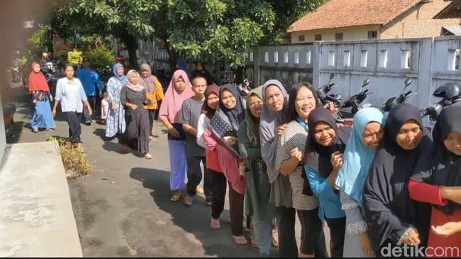 Dari pantuan detikJabar, ratusan masyarakat sudah mulai berkumpul menantikan beras murah, meskipun kegiatan operasi pasar belum digelar. Mereka rela berjejer disengat panasnya Matahari.