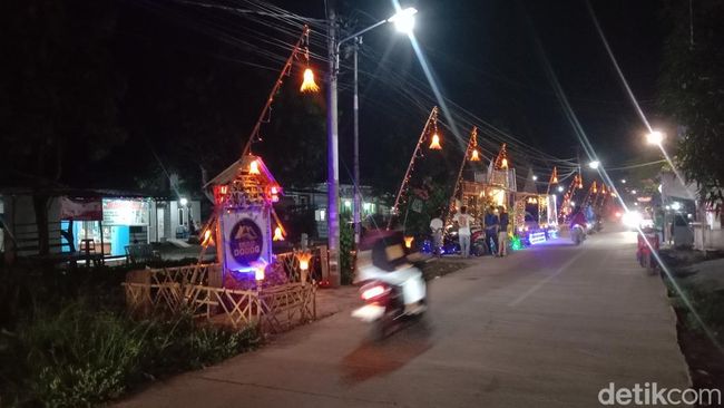 Salah seorang warga Imam Syahroni mengatakan, meski hanya berbahan kayu bekas, ornamen itu dilengkapi ratusan lampion bambu dan aneka lampu kedip. Sehingga, ketika malam hari kampung semakin meriah.