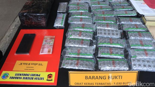 Dari pemeriksaan itu, polisi kemudian mengamankan tiga ribu rumah obat terlarang dari kediaman pelaku yang berada di Kecamatan Sindang, Kabupaten Indramayu. Dari tangan tersangka, polisi juga mengamankan barang bukti lainnya seperti uang tunai sebesar Rp 680 ribu, handphone yang digunakan untuk transaksi hingga sepeda motor.