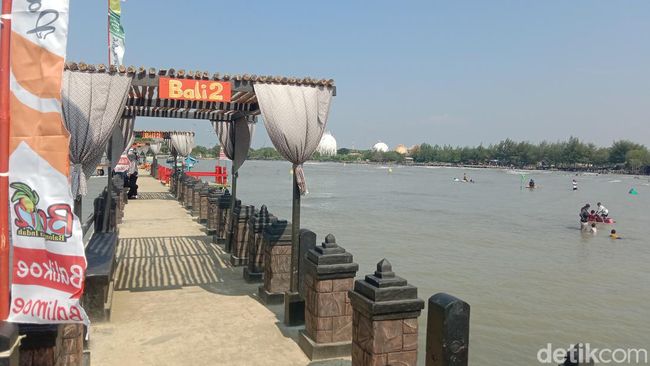 Pantauan detikJabar di lokasi, terlihat sejumlah pengunjung mulai memadati Pantai Bali 2 Indramayu. Puluhan kendaraan roda dua maupun roda empat cukup padat di area parkir.