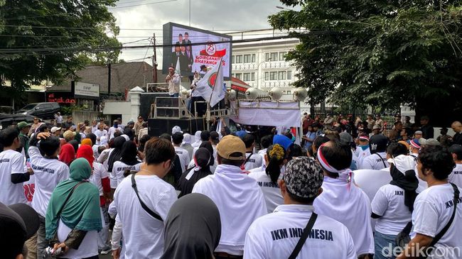 Dalam aksinya, pengusaha IKM di Jabar mengeluhkan kondisi industri rakyat yang hampir mati diserbu barang impor dengan harga murah.