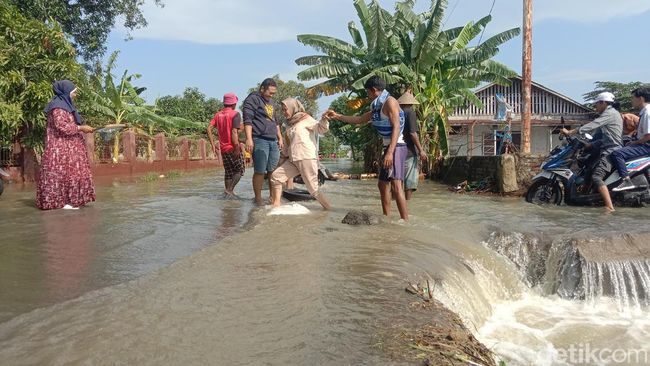 "Dari malam Sabtu. Satu karena hujan kedua kiriman air dari Segeran ke Desa Tinumpuk atau Desa Pondoh. Ditambah lagi karena jalan belum dicor atau dibeton, sehingga jalan itu sangat rendah," kata Warga Desa Tinumpuk, Mudi, Senin (8/7/2024).