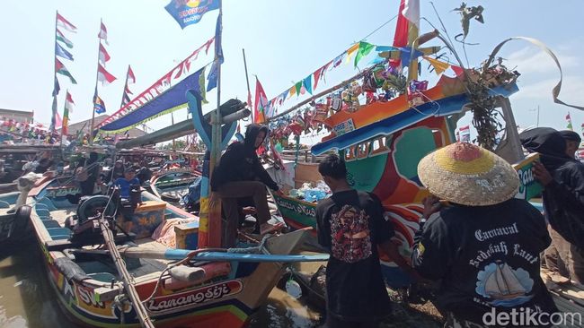 Tradisi nadran di Desa Citemu, Kecamatan Mundu, Kabupaten Cirebon ini mulai digelar pada Minggu (28/7/2024). Tradisi tersebut diawali dengan kegiatan arak-arakan keliling kampung dengan membawa miniatur perahu yang berisi sesaji kepala kerbau dan berbagai macam hasil bumi.