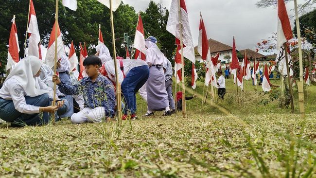 Menjelang peringatan Hari Kemerdekaan RI ke-79 ini, halaman museum sejarah Gedung Perundingan Linggarjati Kuningan kembali dihiasi ribuan bendera Merah Putih, Kamis (1/8/2024).