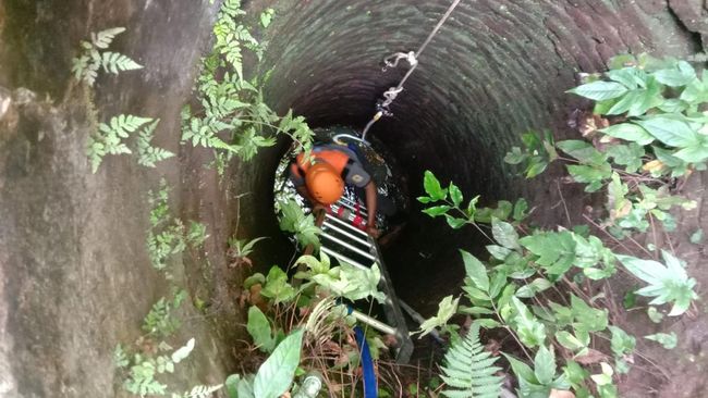 Sampai akhirnya untuk bisa mengevakuasi jasad korban yang berada di dasar sumur sedalam 12 meter itu dibantu oleh personel BPBD Kabupaten Cirebon.