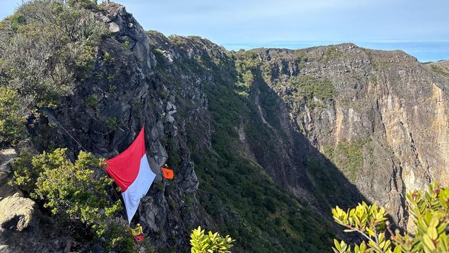 Pengibaran dilakukan pada Sabtu (17/8/2024) di kawah Gunung Ciremai yang jadi atap tertinggi di Jawa Barat dengan ketinggian 3.078 meter di atas permukaan laut (mdpl).