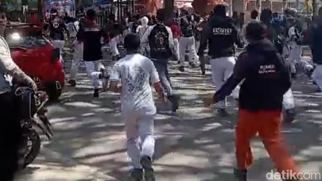 Mereka berlarian ke arah gerbang masuk salah satu sekolah yang menjadi target serangan. Aksi para pelajar ini pun terbilang nekat. Pasalnya, sekolah yang menjadi target serangan mereka lokasinya tidak jauh dari kantor kepolisian, yakni Polsek Kesambi Resor Cirebon Kota.