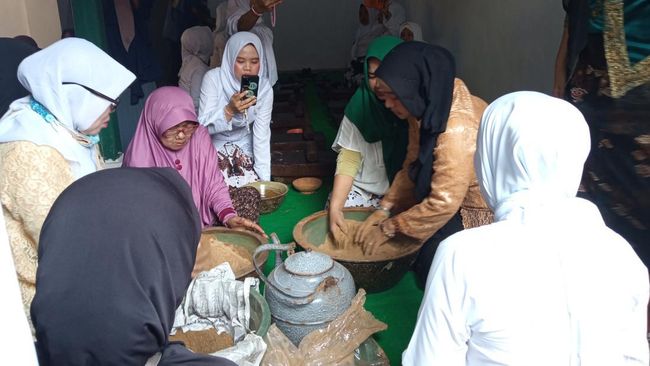 "Setelah bahannya halus kemudian dipipis atau digilas menggunakan gandik atau pipisan. Alatnya terbuat dari batu," kata Satu.