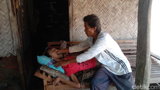 "Waktu lahiran normal. Dulunya dikasih nama Dedi Setiawan oleh ibu kandungnya. Terus pas umur 11 bulan itu di suntik (imunisasi). Terus malamnya panas, sampai akhirnya seperti ini," ucap Wastirah jelaskan asal mula lumpuhnya Sanudin.