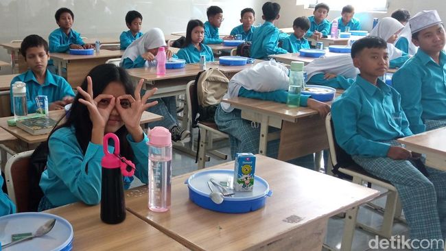 "(Menu makanannya) suka banget. Harapannya sih setiap hari ada makan siang gratis. Harapannya bisa seterusnya. Buat ngurangin uang jajan juga," kata Riyan.