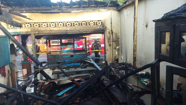 "Saat keluar ternyata ada kepulan asap dari atap kios yang di tengah. Langsung saya teriak kebakaran memanggil warga lain untuk bantu padamkan api," ungkap Sintya.
