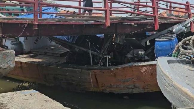 "Ini tuh tadinya mau isi solar, terus pas saya lewat itu talinya putus jadi kan jatuh tuh, jadi perahu ini ketimpa," kata nelayan Karangsong, Mimit, Sabtu (23/11/2024).