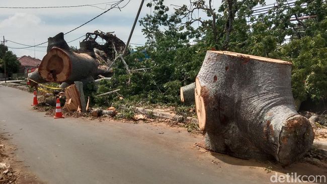 Pantauan detikJabar, batang pohon kapuk randu besar itu tampak masih tergeletak di sekitar Jalan Letnan Sutejo, Kelurahan Margadadi.