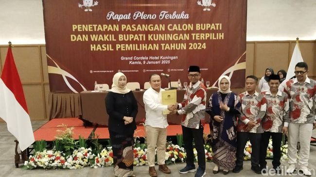 Ketetapan tersebut disampaikan Ketua KPU Kabupaten Kuningan Asep Budi Hartono dalam Rapat Pleno Terbuka Penetapan Pasangan Calon Bupati-Wakil Bupati Kuningan Terpilih Hasil Pemilihan Tahun 2024 di Hotel Grand Cordela Kuningan, Kamis (9/1/2025). Ketetapan ini menjadikan pasangan Dian-Tuti sebagai pemegang tampuk kepemimpinan Kabupaten Kuningan periode 2025-2030.