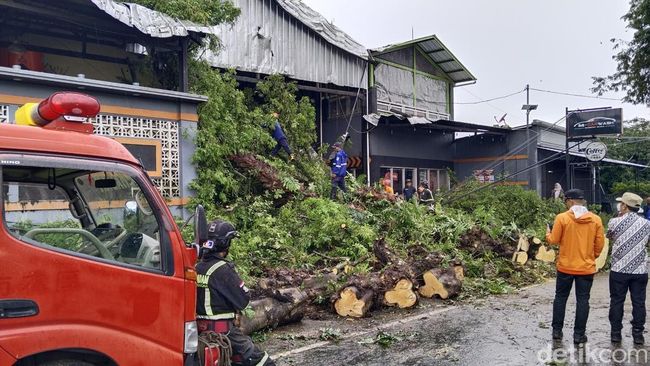 Berdasarkan informasi dihimpun, peristiwa pohon tumbang tersebut terjadi pada Rabu tengah malam sekitar pukul 23.30 WIB. Pohon asem setinggi hampir 15 meter tersebut tumbang melintang menutup jalan dan sebagian ranting menimpa atap depan bangunan pencucian mobil.