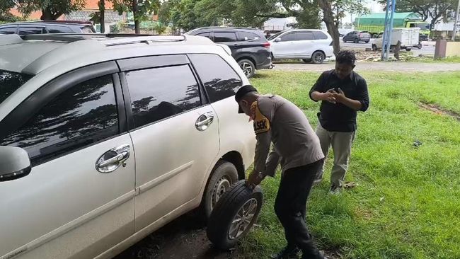 Video yang beredar di media sosial itu pun memperlihatkan mobil Xenia warna putih milik korban. Tampak ban belakang sebelah kiri terlihat kempis.