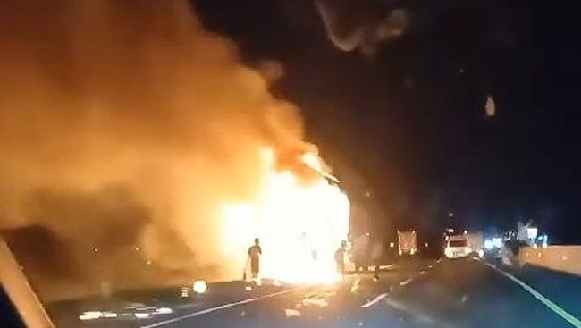 "Benar, telah terjadi kebakaran truk di KM 221. Tidak ada korban dalam kejadian ini, namun muatan truk hangus terbakar," ujarnya.