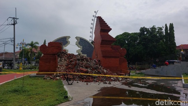 Sekadar diketahui, ambruknya gapura setinggi 8,7 meter itu disebabkan akibat kualotas infrastruktur oleh pihak pengembang. Akibatnya, Kejaksaan Negeri Kabupaten Cirebon menetapkan 3 orang tersangka dalam kasus tindak pidana korupsi atas proses pembangunan Alun-alun Taman Pataraksa.