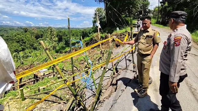 Menurutnya, longsor menggerus badan jalan dengan kedalaman sekitar 3 meter dan panjang retakan mencapai 25 meter. Saat ini, jalan tersebut masih bisa dilalui, namun hanya untuk kendaraan roda dua. Kendaraan roda empat dilarang melintas karena kondisi jalan yang sangat berisiko.