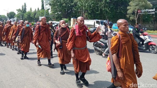 Pantauan detikJabar pada Minggu (27/4), kedatangan para Bhante disambut hangat oleh warga setempat. Iring-iringan mereka dikawal oleh petugas gabungan dari TNI, Polri, hingga berbagai organisasi masyarakat.