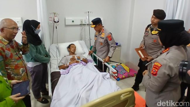 Kapolda Jabar Irjen Rudi Setiawan mengunjungi salah satu korban selamat dari peristiwa menakutkan yakni longsor di tambang Gunung Kuda yang berlokasi di Desa Cipanas, Kecamatan Dukupuntang, Kabupaten Cirebon di RS Mitra Plumbon, Sabtu (31/5/2025).