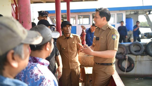 Bupati Indramayu Lucky Hakim meninjau langsung proses pengerukan di muara Sungai Prajagumiwang Karangsong-Indramayu, Jumat (27/6/2025). Peninjauan ini menjadi bentuk keseriusan Pemkab Indramayu dalam menanggapi kendala yang kerap dihadapi para nelayan, khususnya terkait pendangkalan muara yang menyulitkan kapal keluar masuk.