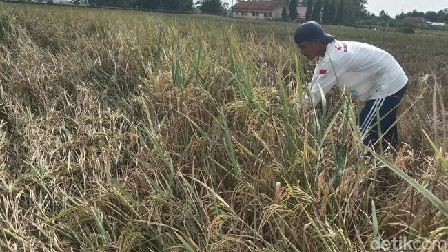 "Ada separuhnya mah, di situ biasanya dapat 15 kuintal," katanya sambil menunjuk petak sawah seluas 100 bata, Rabu (2/7/2025).