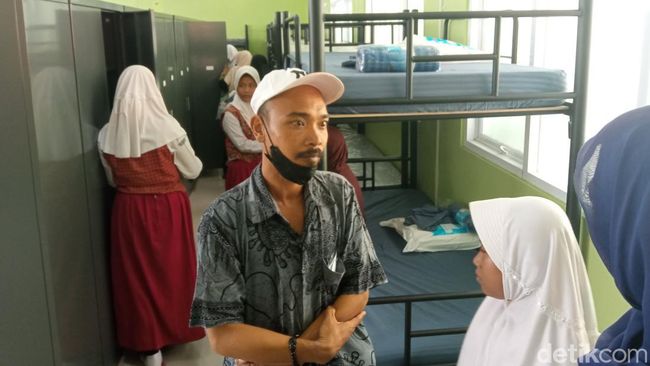 Wahyu menjadi salah satu dari banyak orang tua yang datang mengantar anak-anaknya menjalani hari pertama di Sekolah Rakyat. Di hari pertama, anak-anak menjalani pemeriksaan kesehatan.