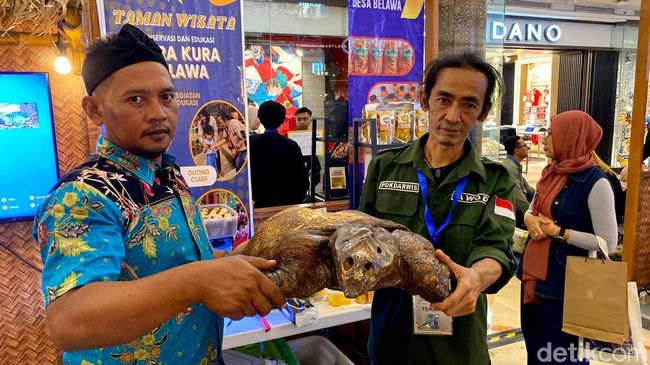 Pada Event akbar Sunda Karsa Fest: Karya Kreatif Jawa Barat (KKJ) x West Java Sharia Economic Festival (WJSEF) x Pekan Kerajinan Jawa Barat (PKJB) 2025 yang digelar Pemprov Jabar dan BI Jabar di Trans Studio Mall, bulus raksasa yang sudah diawetkan dan berumur puluhan tahun, mejeng di booth milik Desa Wisata, Kabupaten Cirebon.