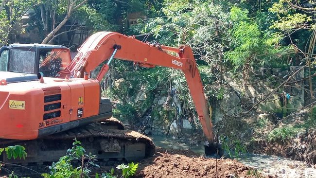 Pantauan detikJabar pada Senin (21/7), satu unit alat berat dikerahkan untuk melakukan pengerukan di sungai Cikalong, tepatnya di RW 18 Larangan Selatan, Kelurahan Kecapi, Kecamatan Harjamukti.