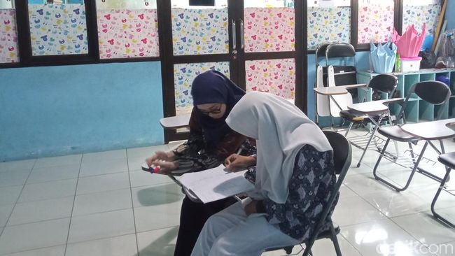 Di sebuah ruang kelas sekolah, Salwa tampak serius menyimak pelajaran. Di sampingnya, seorang guru muda bernama Indah (25) dengan sabar membimbingnya memahami materi matematika.