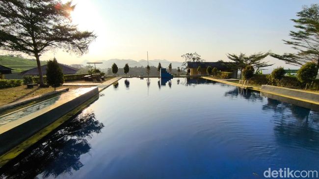 "Di sini kolam renangnya beda sama di tempat lain. Pemandangannya langsung ke area terasering sawah. Udaranya juga di sini masih sejuk, adem apalagi kalau datangnya sore bisa sambil lihat matahari tenggelam," katanya.