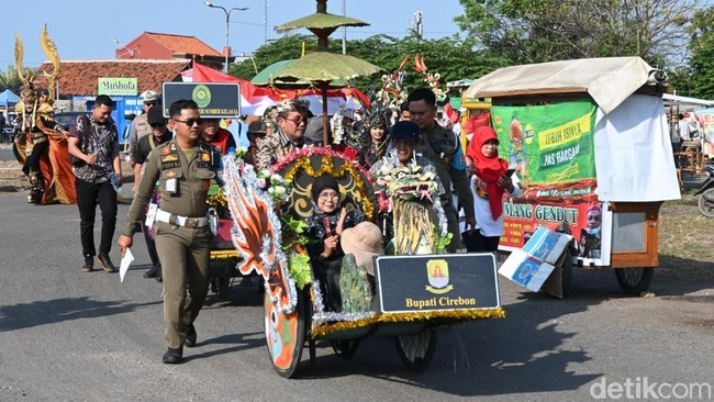 Di tengah hiruk-pikuk itu, pemandangan tak biasa terjadi dimana para pejabat Kabupaten Cirebon mengayuh becak hias, mencoba peran yang biasanya ada di balik punggung rakyat kecil.