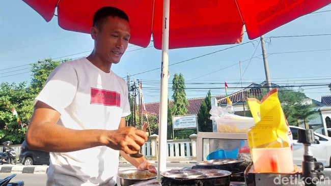 Pada Jumat (15/8/2025), detikJabar pun menyambangi tempat Deny berjualan di Jalan KH Abdul Halim, tepatnya di depan SMPN 3 Majalengka dan SMAN 1 Majalengka. Dari kejauhan, terlihat asap tipis mengepul dari wajan panas di atas kompor. Deny tampak sibuk melayani antrean pembeli yang tak ada habisnya. Kompornya pun seolah nyaris tak pernah padam.