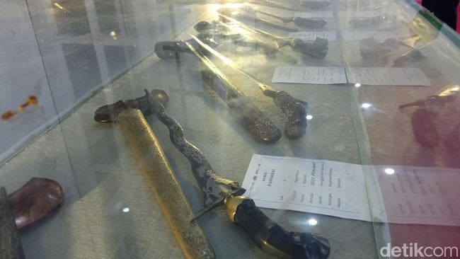Saat memasuki gedung, mata pengunjung akan langsung disuguhi beragam koleksi pusaka yang dipajang rapi dalam etalase kaca. Deretan senjata tradisional seperti keris, tombak hingga pedang menjadi daya tarik utama pameran tersebut.