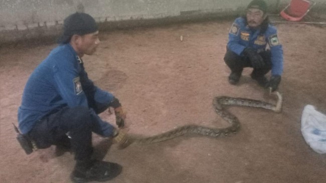 "Kesulitannya, ular berada di atas kandang dan sulit dijangkau, juga kekuatan ular sanca tersebut sangat kuat sehingga menyulitkan proses evakuasi. Ukuran ularnya 3 meter, dievakuasi oleh tiga anggota regu piket damkar," tutur Arga, Jumat (21/11/2025).