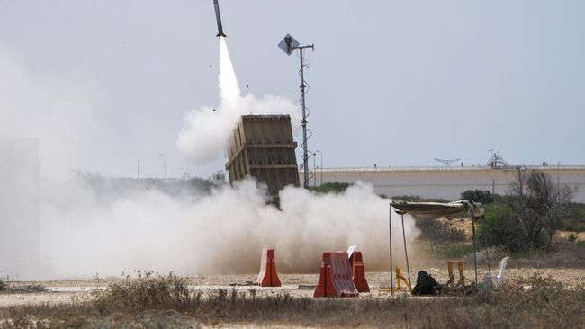 Dalam potret, tertangkap momen sistem pertahanan udara Iron Dome Israel meluncurkan rudal untuk mencegat roket yang ditembakkan dari Jalur Gaza. Foto: Anindyadevi Aurellia/detikcom.