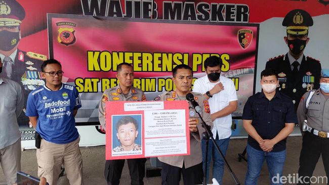 Cimahi - Polisi menunjukkan foto wajah pembunuh anak perempuan di Cibeureum, Kecamatan Cimahi Selatan, Kota Cimahi yang terjadi pada Rabu (19/10/2022) lalu.