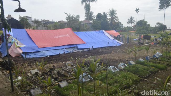 Potret Tenda Pengungsi Cianjur Bersebelahan dengan Kuburan Kerabat