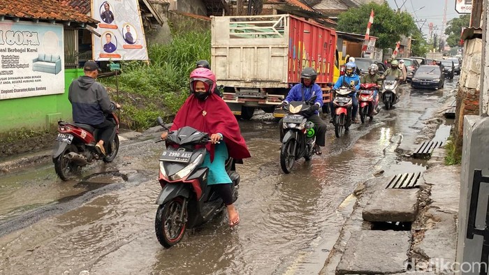 Selain rusak dan berlubang, jalan itu juga kerap tergenang banjir (Foto: Wisma Putra/detikJabar).