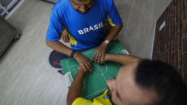 Brasil - Pria Brasil bernama Helio Fonseca punya cara khusus untuk membantu temannya yang tunanetra dan Tuli untuk merasakan kemeriahan laga Piala Dunia2022.